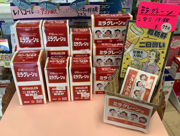 健康な体は元気な肝臓から!ミラグレーンは、お酒を飲む人達の間で評判の「肝臓の栄養剤」。肝臓の働きに必要な成分と、疲れた肝臓に必要な成分、肝細胞を再生するために必要な成分を配合している薬です。お酒を飲む前に服用すると二日酔いの予防に、二日酔いの時も肝臓の働きを助けて早く解消します。脂肪肝の改善も期待できます。